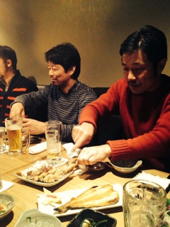 南部どり様自慢の焼き鳥を取り分けて下さる代表と豊嶋兄貴