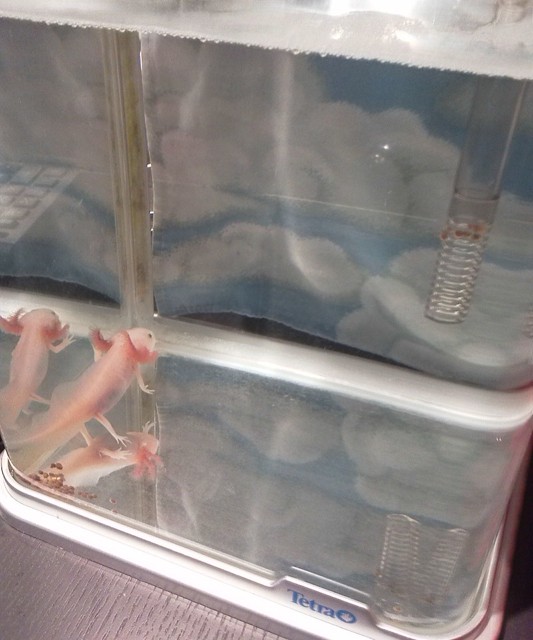 そして、段々と餌の粒が水槽下に溜まるようになってきました。心無しかお腹にも粒の姿がくっきりと、、、
