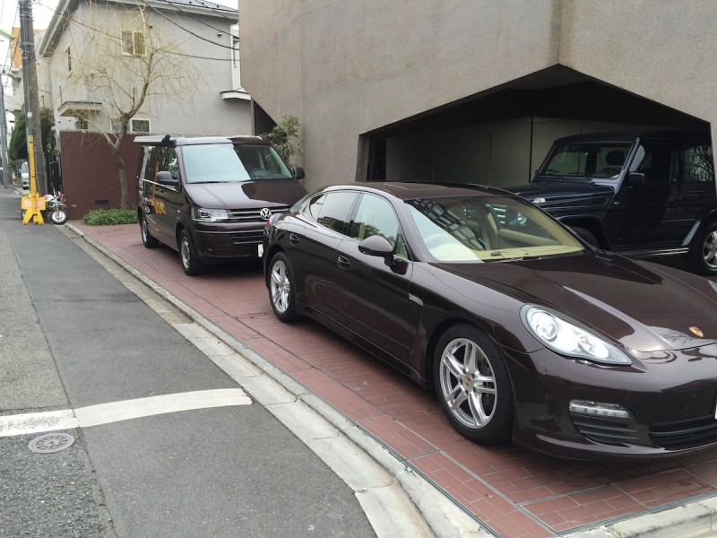 T5と入荷したてホヤホヤのパナメーラ(スペシャルボディーカラーのマホガニーメタリック)
