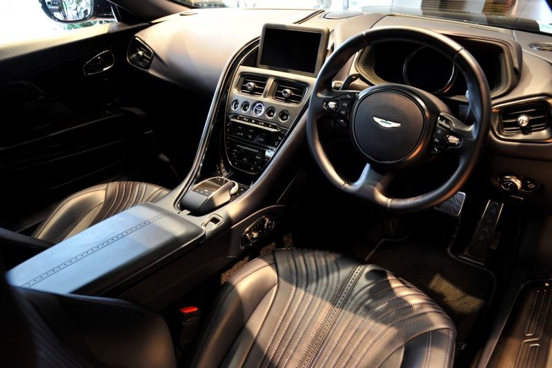アストンらしいクラフトマンシップが息づいたインテリアには高額オプションのヘッドライニングレザー、パフォーレイションレザー・キルティングレザー・アッパー/ロアコントラストステッチ・シートエンボス等が多数搭載されておりアストンマーティンのハンドメイドへの拘りが垣間見えます。