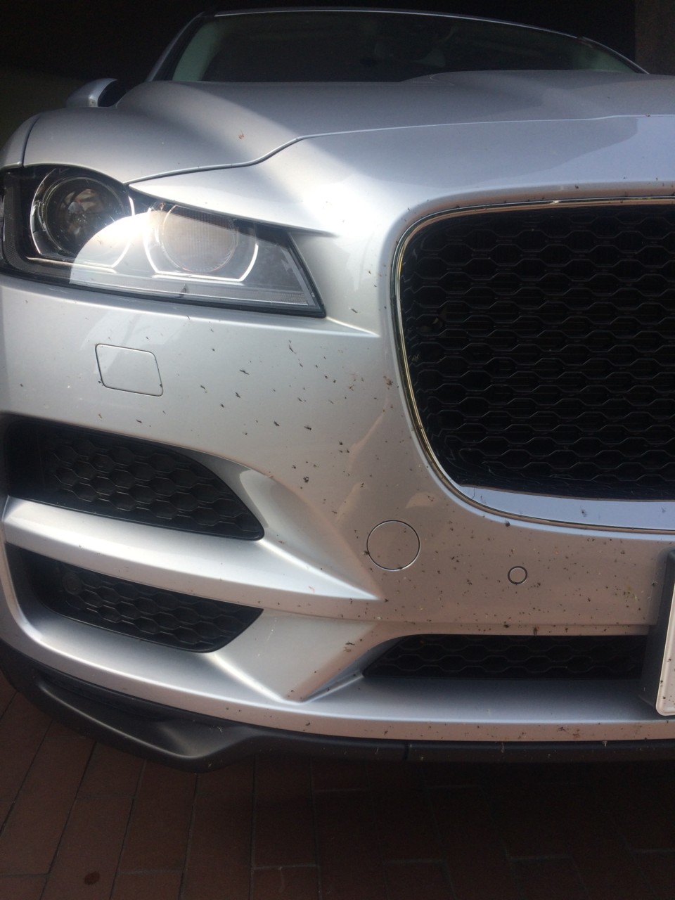 実はこれからの季節は、クルマにとってもスキンケア?が大事になります。クルマのお肌のお手入れというと・・・ボディコーティングですね。お車を綺麗に見せてくれるだけでなく塗装の保護という重要な役割もあります。真夏の炎天下、梅雨時期には酸性雨、そして・・・この季節ならではの、、「虫」や「鳥」」です。特に夜間走行の後には、バンパーやボンネットにびっくりするくらいこびりついています!!すぐに洗い流さないと塗装にシミができたり、塗膜が溶けてしまい、表面がクレーターのように凸凹になってしまいます。こうなってしまうとボディを塗装しなおさなければならなくなってしまいます。