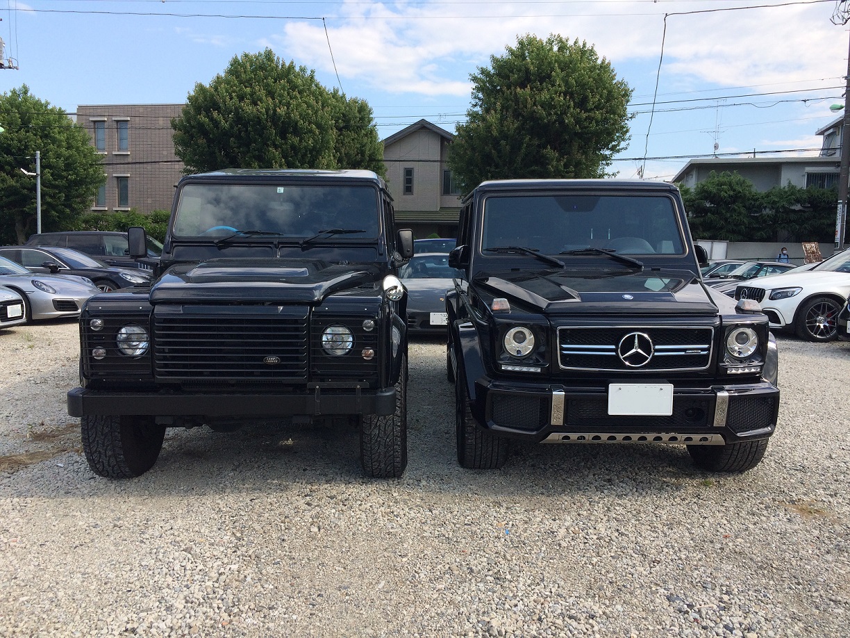 画像の2台、ディフェンダーとGクラスですが、多くの共通点がありますね。堅牢なシャーシを持ち、軍用車のベースになるほどの想像を絶する悪路走破性を持ち、40年近く大きなモデルチェンジもなく、いまだに中古車相場も高値を維持しています。プロユースの機能美を感じるスクエアなボディ。例えば工具のように限定した目的のモノは突き詰めていくほど形は似通ってきます。そんな共通点がこの2台の間にはあります。では、異なる点は?と言えば、Gクラスが基本性能を維持したまま、日常の使い勝手の向上やラグジュアリー装備を得て「乗用車」としても受け入れられています。実際に世田谷の街には、驚くほど多くのGクラスが走っています♪それに対してディフェンダーはというと、何度かエンジンの変更や多少の(笑)快適性向上のアップデートがありましたが、基本的には設計当初からほとんど変わっていないので旧車なのに新しいクルマを買える!マニアックなかっこよさ、ハードな乗り心地や重いクラッチのMTのために、誰にでも乗りこなせなさそうなクルマを操る優越感!日常をアトラクションのように楽しくしてくれる!つまりこの2台、似ているようでニーズは別々なのです。どちらが優れているか?ではなく、どちらが好きか?お望みのカーライフにはどちらが向いているのか?で選んでいただくのが正解です!色々なクルマを比べて選べる、またご相談もお受けできます。そのあたりがGRAZの得意とするところですので、お気軽にお問い合わせください!