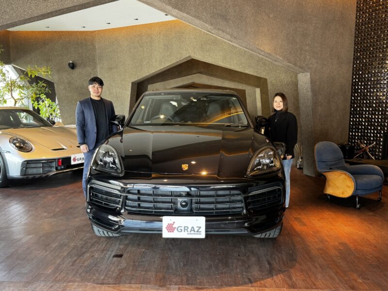 お客様のコメント! 『前職の頃からお知り合いのOさんにご紹介頂きカイエン E-hybridを購入しました!ハイブリッドモデルはあまり人と被らないので満足しています!車検の際も是非お願いします!」