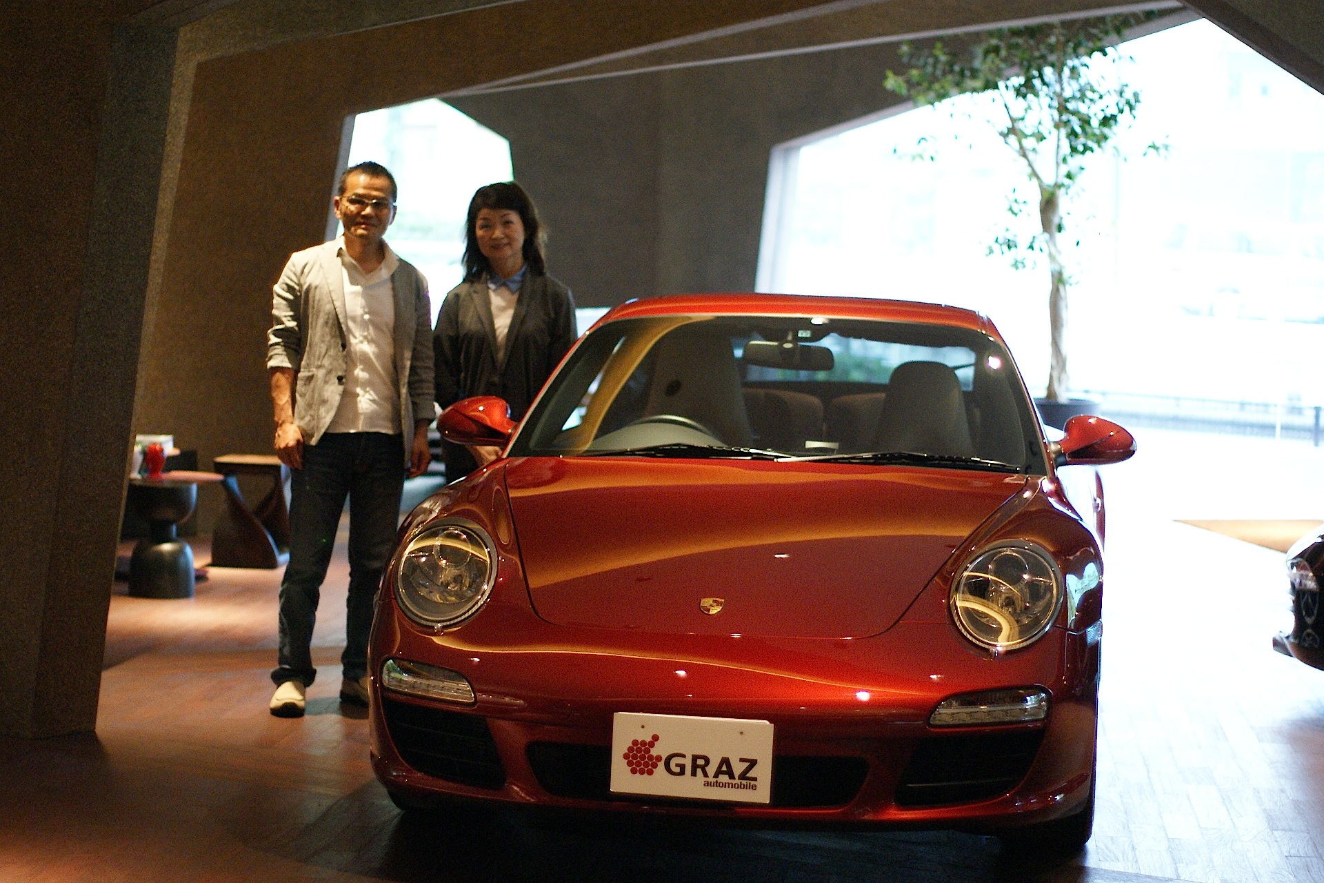 「今回は、還暦という人生のひとくぎりといこともあって人生初のポルシェを選びました。バサルトブラックとも悩みましたがツートンのオールレザーインテリアとスペシャルボディーカラーのルビーレッドのカレラに決めました。メンテナンスなどが心配だったのですが、GRAZのスタッフの方々がとても親切に説明して下さいましたので安心してポルシェを購入することができました。大事に乗りますので、これからもよろしくお願いしますね!」