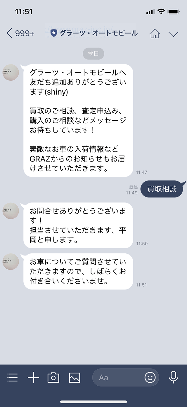トーク画面に「査定希望」や「買取相談」など入力して送信ください。