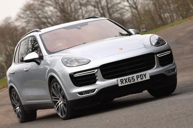 2016年「Porsche Cayenne turboS 4.8L V8ツインターボ 8速ティプトロニックS メテオグレーメタリック×ブラック/ガーネットレッド ポルシェ・セラミックコンポジット・ブレーキ(PCCB) ポルシェ・ダイナミックシャーシ・コントロールシステム(PDCC) ポルシェ・トルク・ベクトリングプラス(PTV Plus) ポルシェ・トラクション・マネージメントシステム(PTM) ポルシェ・スタビリティ・マネージメントシステム(PSM) ポルシェ・エントリー&ドライブシステム アダプティブクルーズコントロール LEDヘッドライト エンボスレザーシート BOSEサラウンド・システム 21インチアルミホイール」