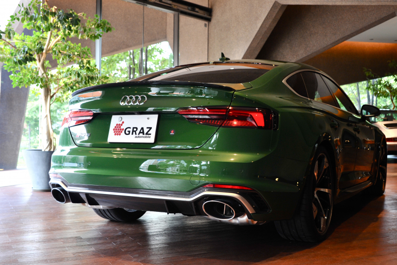 【契約御礼】2019年 Audi RS5 Sportback quattro 3.0L V6ツインターボ 8AT ソノマグリーン × ブラック・ファインナッパレザー アダプティブクルーズ アクティブレーンアシスト スポーツサスペンションプラス 専用スポーツシート セラミックブレーキ(フロント) 20インチ・グロスアンスラサイトAW