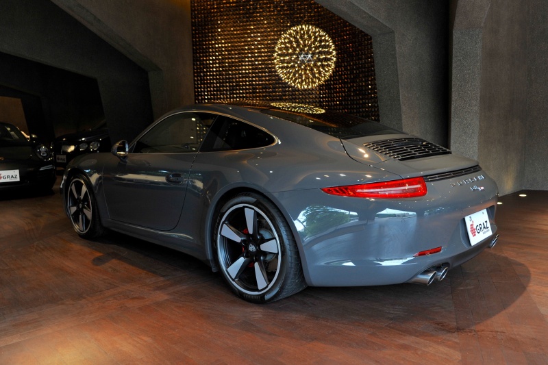 【契約御礼】2014年 PORSCHE 911 (Type991) 50th Anniversary Edition PDK 右H グラファイトグレー × 千鳥格子コンビシート(ブラック/ダークシルバー) PSM PASM PTVPlus ワイドボディ44mm エレクトリックコントロールシート 専用メーターパネル 専用ロゴ クロームライン スポーツドアミラー スポーツエグゾーストシステム チルト/スライド式電動ガラスサンルーフ ポルシェ・エントリードライブ ライトデザインパッケージ レザー仕上げダッシュボードトリムパッケージ シートヒーター ペイントキー LEDヘッドライト スポーツクロノパッケージ PDCC パークアシストシステム パワーステアリングプラス 20インチ・スポーツクラシックホイール