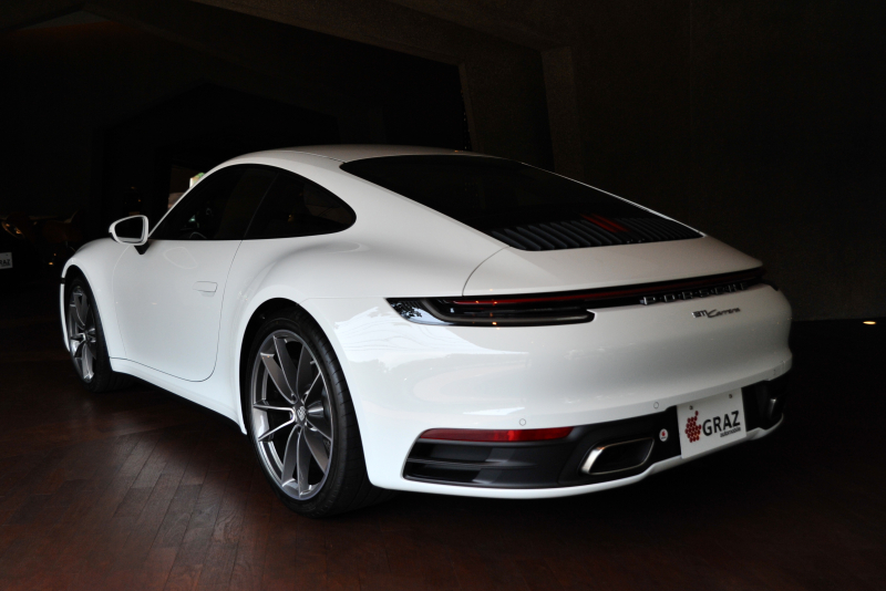 【契約御礼】2020年モデル Porsche 911(Type992) Carrera PDK ホワイト × ブラックレザー 左ハンドル 新規未登録車 20/21インチCarrera Classicホイール クルーズコントロール PCM AppleCarPlay Sportモード PSM PASM 4灯式デイタイムランニングライト搭載LEDヘッドライト オートエアコン フロアマット 電動リアスポイラー