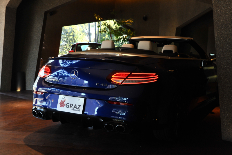 【契約御礼】2018年 MERCEDES BENZ AMG C43 4MATIC Cabriolet 後期タイプ ブリリアントブルー × ポーセレン ダークブルールーフトップ レーダーセーフティパッケージ AMGスタイリングパッケージ メモリー付パワーシート シートヒーター マルチファンクションステアリング メルセデスミーコネクト COMANDシステム レザーエクスクルーシブパッケージ LEDヘッドライト 19インチマットブラックマルチスポークホイール AMGエグゾーストシステム AMGRIDECONTROLスポーツサスペンション Burmesterサラウンドサウンドシステム