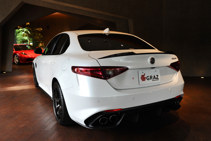 東京都にお住いのお客様に「2018年 ALFA ROMEO ジュリア クアドリフォリオ 特別仕様車「カルボニオ」 全国限定50台 トロフェオホワイト × ブラック アダプティブクルーズコントロール レーンキーピングアシスト harman/kardonプレミアムオーディオ 鍛造19インチアルミホイール レッドキャリパー バックカメラ シートヒーター 社外ナビゲーション アルミフューエルキャップ カーボンサイドミラーカバー カーボンシフトノブインサート カーボンイルミネーテッドドアシルガード アダプティブ機能付きバイキセノンヘッドライト 自動防眩ミラー クアドリフォリオ用エクステリア(フロント/リアバンパー、フロントサイドフェンダーエアアウトレット、カーボンインサート付きサイドスポイラー、カーボンリアスポイラー) 7インチフルカラーTFTマルチファンクションディスプレイ Connectシステム」をご成約頂きました!