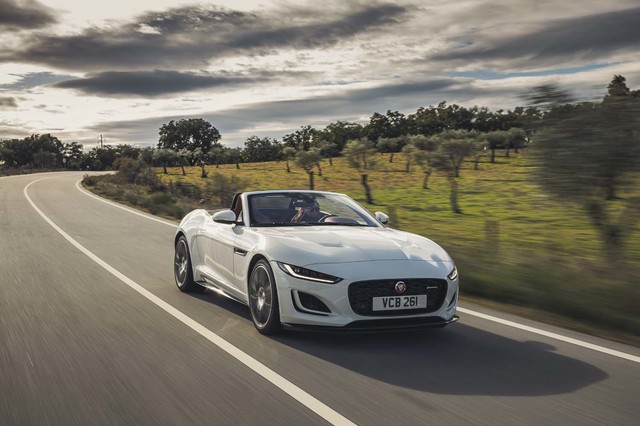 2021年 「JAGUAR F-type Convertible R-Dynamic P300 ユーロンホワイト × マーズ ベージュ幌 ディーラー車 右ハンドル クライメートパック 20インチスタイル6003グロスブラックホイール 電動格納ヒーテッドドアミラー ウィンザーレザーパフォーマンスシート エクステンデッドレザーアップグレード カーボンファイバーインサートパネル プレミアムキャビンライト パークアシスト スエードクロスサンバイザー 6wayシートヒーター&ベンチレーション電動シート TVチューナー Meridianサウンドシステム クルーズコントロール キーレスエントリー Applecarplay」
