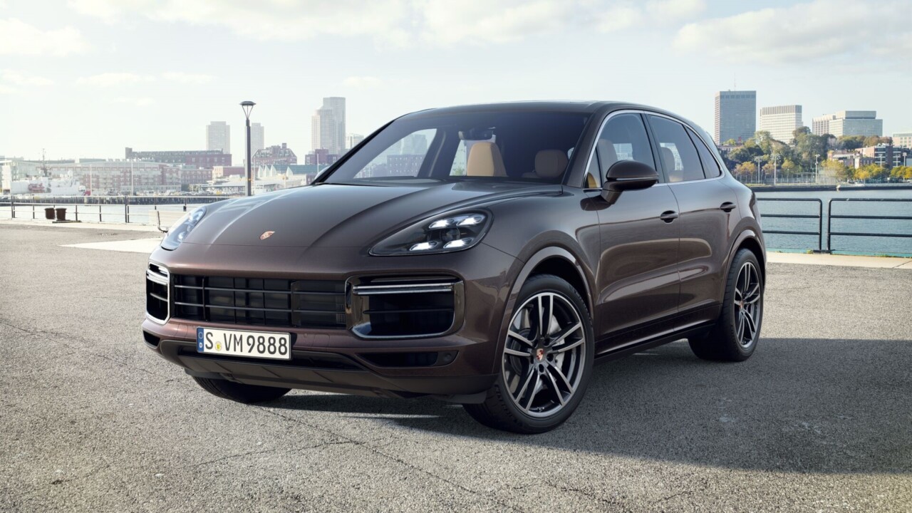 2019年モデル 「PORSCHE Cayenne Turbo Tip-S マホガニーメタリック × ブラック&モハーベベージュ ディーラー車 左ハンドル 21インチカイエンエクスクルーシブデザインアルミホイール パノラマルーフ LEDマトリックスヘッドライトPDLS付 アダプティブクルーズコントロール レーンチェンジアシスト サラウンドビュー付パークアシスト サーフェスコーテッドブレーキ(PSCB) ヒーター付マルチファンクションステアリングホイール 18way電動メモリー機能付アダプティブスポーツシート フロント/リアシートヒーター BOSEサラウンドサウンドシステム PASM付エアサスペンション 自動防眩ミラー ダークウォールナットインテリアパッケージ」