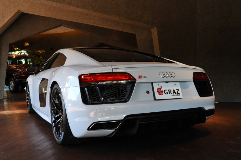 【契約御礼】2016年 AUDI R8 5.2 FSI quattro スズカグレーメタリック × ブラックレザー ディーラー車 左ハンドル LEDヘッドライト サイドブレードカーボンシグマ 20インチ10スポークYデザイングロスブラックホイール シートヒーター デコラティブパネルカーボン マルチファンクション2コントロールサテライトステアリングホイール MMIナビゲーション バーチャルコックピット TVチューナー リアビューカメラ マグネティックライド クルーズコントロール フロント/リアパーキングセンサ タイヤプレッシャーモニタリング