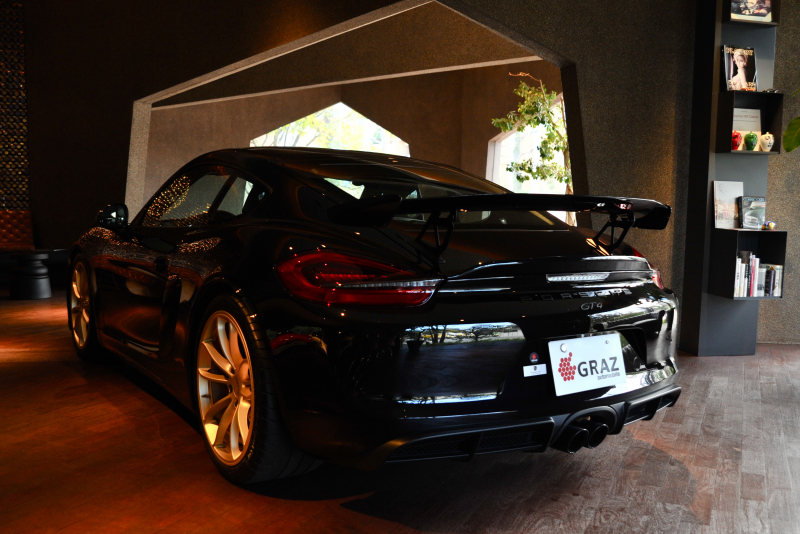 大阪府にお住いのお客様に2016年「PORSCHE Cayman GT4(Type981) ジェットブラック×ブラック スポーツクロノパッケージ カーボンフルバケットシート レッドキャリパー 20インチGT4ホイール(サテンゴールド) スポーツエグゾースト 360mmアルカンタラステアリング アルカンターラインテリアパッケージ アルカンターラルーフライニング キセノンヘッドライト ETC」をご成約頂きました!!