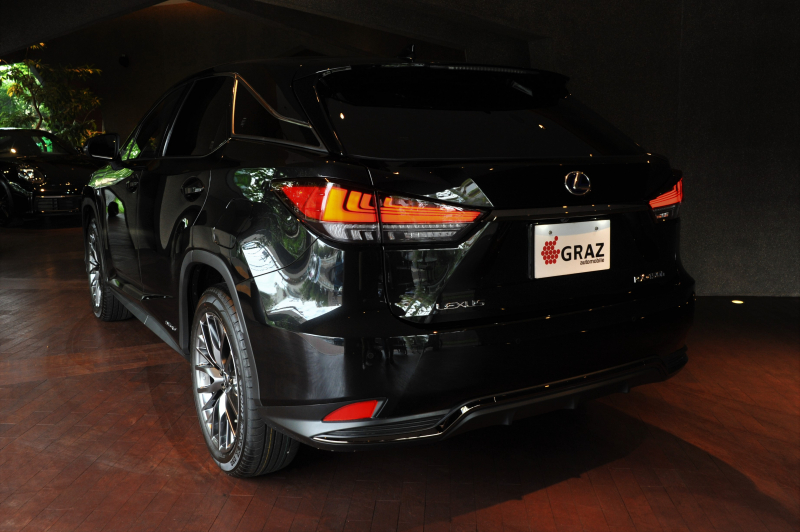 【契約御礼】2022年 LEXUS RX450h F SPORT 4WD グラファイトブラックガラスフレーク×ブラック 20インチアルミホイール 三眼フルLEDヘッドランプ(ロー・ハイビーム)&LEDシーケンシャルターンシグナルランプ(フロント・リヤ)+AHS+ヘッドランプクリーナー ムーンルーフ(チルト&スライド式) Lexus Safety System プラス パノラミックビューモニター ヘッドアップディスプレイ ドラレコ ETC