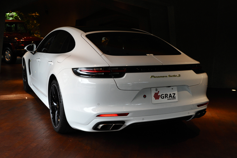 【契約御礼】2018年 PORSCHE Panamera Turbo S E-Hybrid ディーラー車 右ハンドル キャララホワイトメタリック × ブラック&クレヨン スポーツデザインパッケージ Burmesterハイエンド3Dサラウンドシステム 18way電動アダプティブスポーツシート 8wayリアコンフォートシート 4ゾーンオートマチッククライメントコントロール リアアクスルステアリング 21インチスポーツデザインホイール ナイトアシスト ポルシェリアシートエンターテイメント 360°カメラ PCM TVチューナー アダプティブクルーズコントロール レーンキープアシスト レーンチェンジアシスト スポーツクロノパッケージ カーボンインテリアパッケージ カーボンドアシルプレート エントリードライブシステム