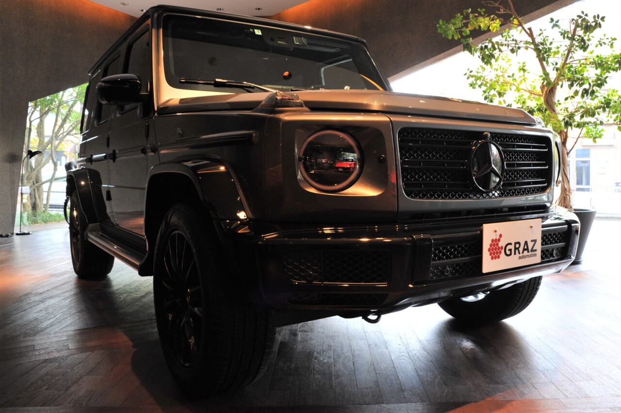 【入荷情報】2021年  Mercedes-Benz G400d manufaktur Edition セレナイトグレー × チタニウムグレー/ブラック ディーラー車  左ハンドル ブラックペイント20インチAMGマルチスポークアルミホイール レーダーセーフティパッケージ マルチビームヘッドライト アダプティブクルーズコントロール イージーエントリー メモリー付きパワーシート シートヒーター(フロント、リア) シートベンチレーション リラクゼーションシート 本革巻きウッドステアリング ウッドインテリアトリム Burmesterサラウンドサウンドシステム ランバーサポート 電動ガラスサンルーフ DINAMICAルーフライナー アンビエントライト ブラックスモーク仕様(ヘッドライト、ウィンカー、テール) 全周囲カメラ TVチューナー デジタルインナーミラー ドラレコ レーダー ETC