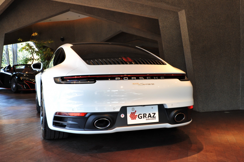 【契約御礼】2020年 PORSCHE 911(type992) Carrera ホワイト × ブラック 右ハンドル ディーラー車 20/21インチ Carrera Classic ホイール パーシャルブラックレザー スポーツシート スポーツクロノパッケージ スポーツエグゾースト(シルバーパイプテール) クルーズコントロール チルト/ スライド式電動ガラスサンルーフ 電動格納ミラー エントリー&ドライブ プライバシーガラス オートエアコン シートヒーター シートベンチレーション パノラマカメラ パーキングセンサー ドリンクホルダー AppleCar Play ドラレコ ETC