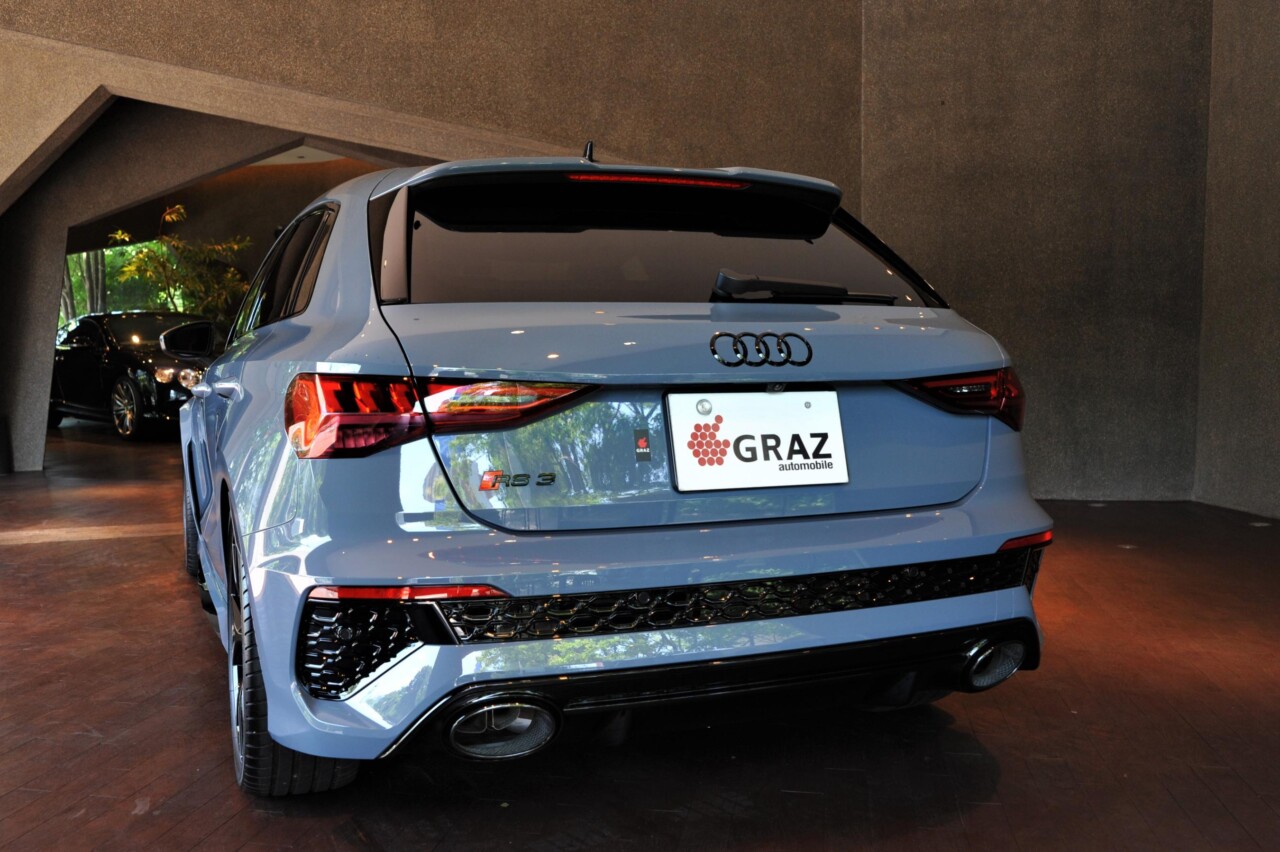 【本日2台目!!】2022年 Audi RS3 Sportback 1st edition 全国50台限定 ケモラグレーメタリック×ブラック/レッドステッチ 右ハンドル ディーラー車 ワンオーナー 19インチアルミホイール5スポーク Yステッチ カラードブレーキキャリパーレッド RS デザインパッケージエクステンデッドレッド (RSデザインパッケージレッド シートショルダーダイナミカエクスプレスレッド エアベントセンターバーエクスプレスレッド) デコラティブパネル カーボンアトラス ブラックAudi rings&ブラックスタイリングパッケージ RS スポーツエキゾーストシステム RS ダンピングコントロールサスペンション ドアエントリーライト(フォーリングス&ゲッコー) スポーツシート (フロント) / ファインナッパレザー ハニカムステッチング ドライバーシート / エクステリアミラーメモリー機能 シートヒーター(フロント) 3ゾーンオートマチックエアコンディショナー カーボンエンジンカバー パノラマサンルーフ プライバシーガラス プレセンスベーシック マトリクスLEDヘッドライト ダイナミックターンインディケーター (フロント / リヤ) Bang & Olufsen 3Dサウンドシステム Apple CarPlay/AndroidAuto Bluetooth USB(前席/後席) リアビューカメラ レーダー ドラレコ ETC