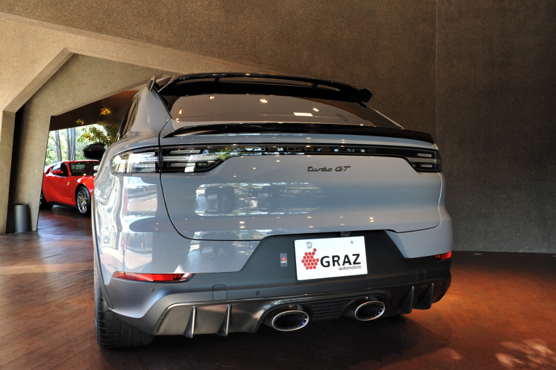 • 【契約御礼】2022年 PORSCHE Cayenne Coupe turbo GT アークティックグレー × GTインテリアパッケージ(ネオジムステッチ付) 右ハンドル ディーラー車 22インチサテンプラチナ塗装GT Design ホイール エントリー&ドライブ カーボンルーフ カーボンサイドミラー カーボンリアディフューザー カーボンリアサイドウィング アルミルックフューエルフィラーキャップ PCCB LEDマトリックス ヘッドライトPDLS Plusを含む ティンテッドLEDテールライト LEDドアカーテシーライト アダプティブクルーズコントロール アクティブレーンキーピングアシストクロスロードアシスト及びエマージェンシーストップを含む プライバシーガラス ヘッドアップディスプレイ アルカンターラルーフライニング アンビエントライト シートヒーター(フロント/リア) BOSEサラウンドサウンドシステム PCM ドラレコ ETC
