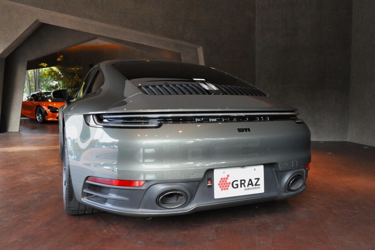 【契約御礼】2022年 PORSCHE 911 (type992) Carrera PDK アベンチュリングリーン × ブラック 右ハンドル ディーラー車 ワンオーナー 20/21インチサテンブラック塗装Carrera S アルミホイール スポーツクロノパッケージ スポーツエグゾースト(ブラックテールパイプ) ポルシェダイナミックライトシステム Exclusive Designテールライト チルト/ スライド式電動ガラスサンルーフ パーシャルレザーシート 4Wayスポーツシート シートヒーター エントリー&ドライブシステム アダプティブクルーズコントロール レーンキープアシスト アクティブレーンキープ パーキングアシスト 全周囲カメラ プライバシーガラス Apple CarPlay 前後ドライブレコーダー ETC