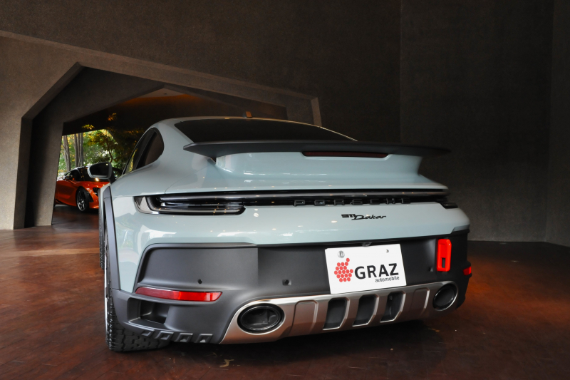 【本日2台目!】2023年 PORSCHE 911(type992) Dakar シェードグリーンメタリック × ブラック 右ハンドル ディーラー車 ワンオーナー 19/20インチサテンブラック塗装Dakarホイール(オールテレインタイヤ) カラークレスト付きホイールキャップ Dakar モデル ステンレススチール製フロントプロテクションおよびエアインテークグリル付きフロントエプロン 2つのエアアウトレット付き炭素繊維強化プラスチック(CFRP)製の軽量フロントリッド (エクステリアカラー) 炭素繊維強化プラスチック(CFRP)製の固定式軽量リアスポイラー テールパイプトリムおよびインタークーラーエアアウトレットと一体化したステンレススチール製リアエプロンおよびリアエプロン下部セクション レッド仕上げのトーバーシステム(フロントおよびリア) フルバケットシート エクステンデッドレザー/Race-Texインテリアパッケージ(シェイドグリーンステッチ付き) スポーツクロノパッケージ スポーツエグゾースト PASM PTV Plus PDCC アクスルリフトシステム パワーステアリングプラス リアアクスルステアリング レッドブレーキキャリパー LEDマトリクスヘッドライト(PDLS Plusを含む) 自動調光式ルームミラー/エクステリアミラー 電動格納ミラー 軽量遮音プライバシーガラス パークアシスト サラウンドビューカメラ クルーズコントロール ポルシェエントリー&ドライブシステム スピードメーターパネル(ガーズレッド) スポーツクロノストップウォッチ Rece-Texストレージリッド(ポルシェクレスト付き) マットカーボンインテリア 限定モデルシリアルナンバー 保護フィルム(フロント) アンビエントライト 2ゾーンオートクライメートコントロール イオナイザー BOSEサラウンドサウンドシステム ETC