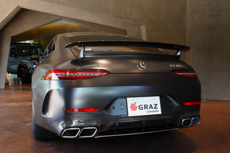 【契約御礼】2019年 Mercedes-AMG GT 4Door Coupe 63S 4MATIC+ グラファイトグレーマグノ×ブラック 左ハンドル ディーラー車 AMGパフォーマンスパッケージ(AMGパフォーマンスシート、マットブラックペイント21インチAMGクロススポークアルミホイール(鍛造)) AMGカーボンパッケージ(AMGカーボンファイバーインテリアトリム、AMGパフォーマンスステアリング(カーボン/DINAMICA)、AMGカーボンファイバーエンジンカバー、AMGエクステリアカーボンパッケージ) AMG DYNAMIC SELECT 「RACE」(ドリフトモード付) AMGダイナミックエンジンマウント AMGリア・アクスルステアリング AMGRIDECONTROL+エアサスペンション AMG電子制御リミテッド・スリップ・デフ AMG強化ブレーキシステム AMGイエローブレーキキャリパー AMGパフォーマンスエグゾーストシステム フルレザー仕様(ナッパレザー/DINAMICA、イエローステッチ入) シートヒーター(前席、後席) レーダーセーフティパッケージ アダプティブハイビームアシスト・プラス アダプティブパーキングアシスト(縦列、並列駐車) ソフトクローズ 360°カメラ Burmesterハイエンド3Dオーディオパッケージ(Burmesterハイエンド3Dサラウンドサウンドシステム、ガラススライディングルーフ) Bluetooth ドラレコ レーダー ETC