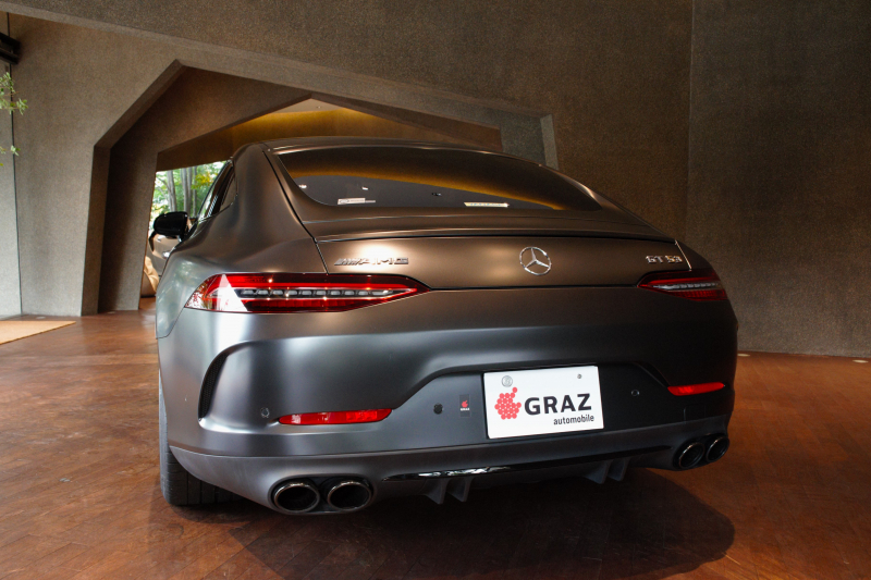 【契約御礼】2020年  Mercedes-AMG  GT 53 4-Door Coupe 4MATIC+(ISG搭載モデル)   グラファイトグレーマグノ × ブラック  左ハンドル  ディーラー車  ワンオーナー マットブラックペイント21インチAMG5ツインスポークアルミホイール AMGエクステリアナイトパッケージ AMGスピードシフトTCT AMG RIDE CONTROL+エアサスペンション AMGダイナミックプラスパッケージ AMGリア・アクスルステアリング AMGパフォーマンスステアリング AMG強化ブレーキシステム AMGイエローブレーキキャリパー AMGパフォーマンスシート 電子制御AMGリミテッド・スリップ・デフ 大径フロントブレーキローター AMG DYNAMIC SELECT「RACE」(ドリフトモード付) AMGドライブコントロールスイッチ AMGパフォーマンスエグゾーストシステム レーダーセーフティパッケージ パノラミックルーフ フルレザー仕様(ナッパレザー、ダイヤモンドステッチ入) ナッパレザーダッシュボード レザーDINAMICAルーフライナー ヘッドアップディスプレイ エアバランスパッケージ シートヒーター シートベンチレーター AMGイルミネーテッドステップカバー クライメートコントロール 可変式リアスポイラー  Burmesterサラウンドサウンドシステム アンビエントライト ドラレコ レーダー ETC