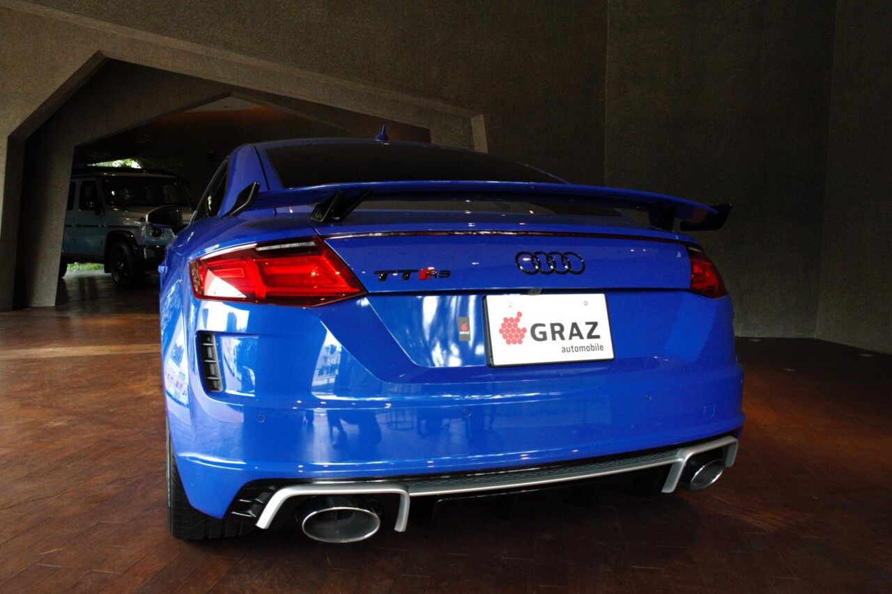 【契約御礼】2021 Audi TTRS Coupe RS 25 years 限定35台 ノガロブルーパールエフェクト × ブラック 右ハンドル ディーラー車 20インチ7スポークローターデザインアルミホイール レッドキャリパー 専用ロゴ付ホイールキャップ 専用ロゴ付ドアトリム 専用ロゴ付ドアエントリーライト 専用ロゴ付アルカンターラ/レザーシート 専用ロゴ&ブルーステッチ入り専用フロアマット ステアリングセンターマーカーブルー エクステンデッドレザー マットアルミニウムルックサイドスカート/フロントブレード/リヤディフューザートリム ブラックAudi rings ブラックドアミラー/リアスポイラーマウント/リアスポイラーサイドブレード コンフォートパッケージ クルーズコントロール カーボンエンジンカバー デコラティブパネルカーボン プライバシーガラス Bang & Olufsen サウンドシステム Apple CarPlay ドラレコ ETC