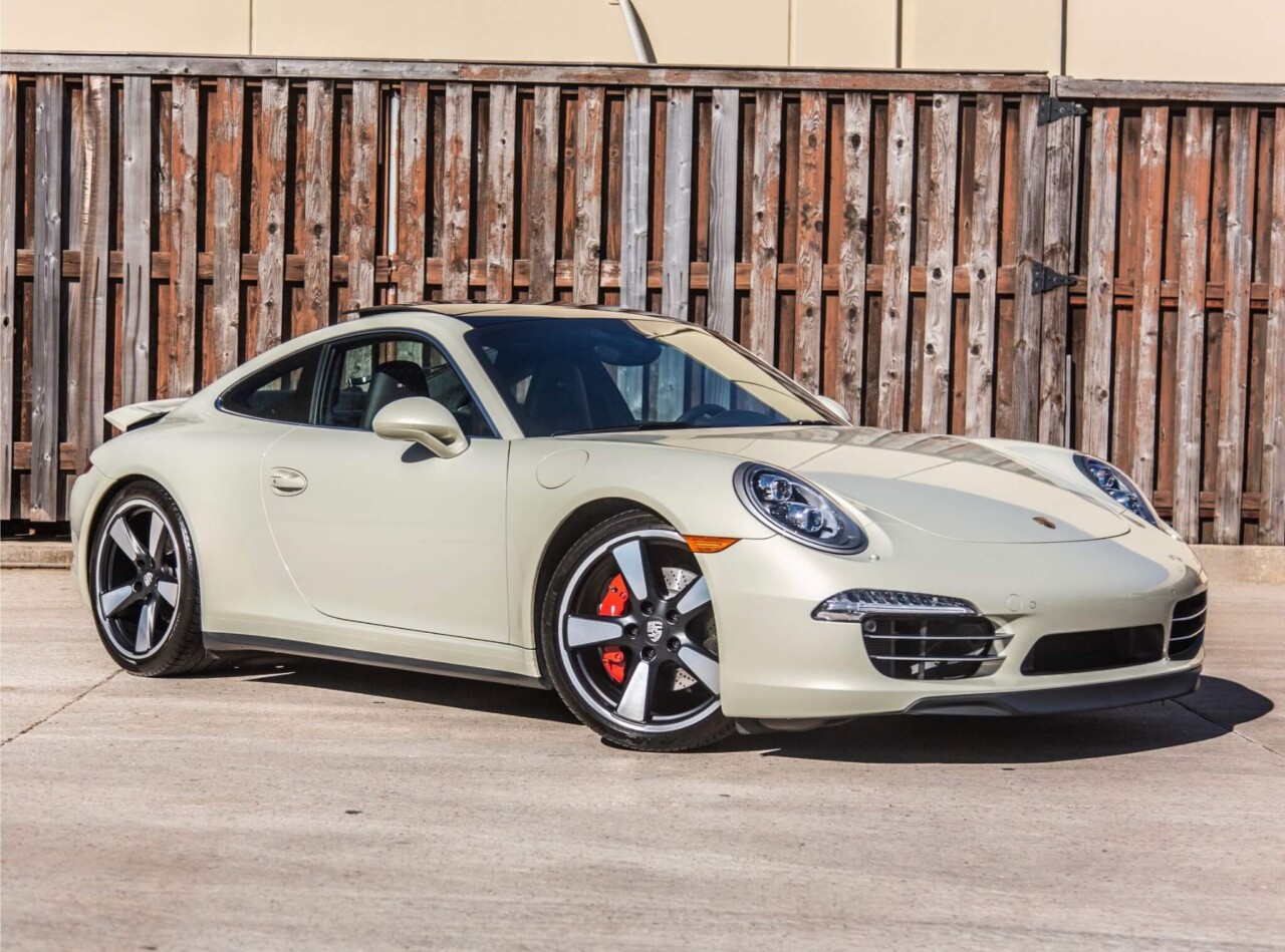 2014年  PORSCHE 911(Type991.1) 50th Anniversary Edition  カイザーグレーメタリック × 千鳥格子  右ハンドル  ディーラー車  7速PDK PSM(ポルシェ・スタビリティ・マネージメントシステム) PASM(ポルシェ・アクティブサスペンション・マネージメントシステム) PTV Plus(ポルシェ・トルク・ベクトリングプラス) レッドブレーキキャリパー 室内センサー付盗難防止アラームシステム LEDポジションライト、LEDテールライト 【50th 特別装備】ワイドボディ44mm エレクトリックコントロールシート 千鳥格子コンビシート(ブラック/ダークシルバー) 専用メーターパネル(メーターダイヤル・ブラック、グリーン文字、ホワイト針) 専用ロゴ(ドアエントリガード、グローブボックスバッジ、シートヘッドレスト、リアエンブレム) クロームライン(フロントエアインテーク、リアガーニッシュ、リアリッドグリル) スポーツドアミラー 20インチ・スポーツクラシックホイール(ワイドタイヤ装着) スポーツエグゾーストシステム 【オプション】レザー仕上げダッシュボードトリムパッケージ ライトデザインパッケージ スポーツクロノパッケージ スポーツエグゾースト 14wayメモリー機能付パワーシート シートヒーター パワステプラス パークアシストシステム(フロント・リア) ラゲッジネット(助手席足元) アルカンターラルーフライナー Apple CarPlay Androidautoドラレコ ETC