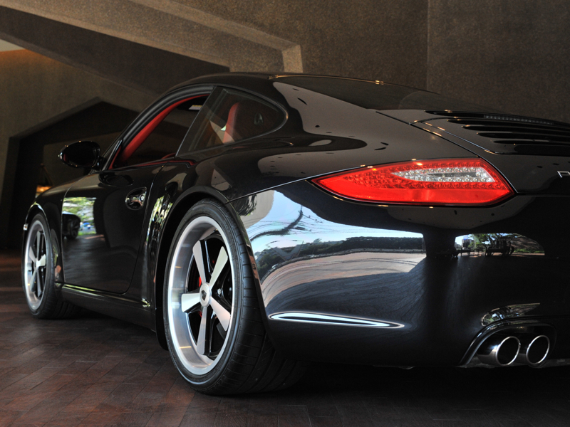 東京都杉並区にお住まいのお客様に、2009年モデル「ポルシェ 911カレラ PDK バサルトブラック×カレラレッド ナチュラルレザー 車高調 19インチホイール 4本出しマフラー HDDナビ!」をお決めいただきました。