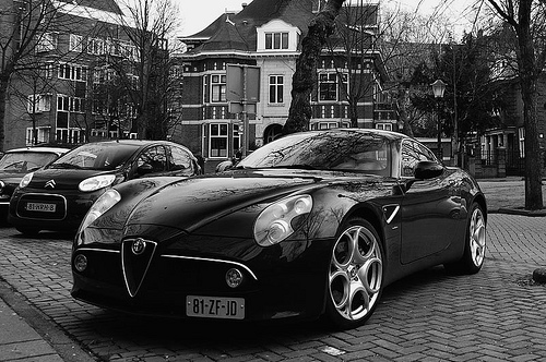 【入荷情報】2009年 アルファロメオ 8C Competizione V8 4.7L 6速Qセレクト ブラック×グレーレザー(Poltrona Frau製) カーボンファイバー・ステアリング 純正20インチホイール!