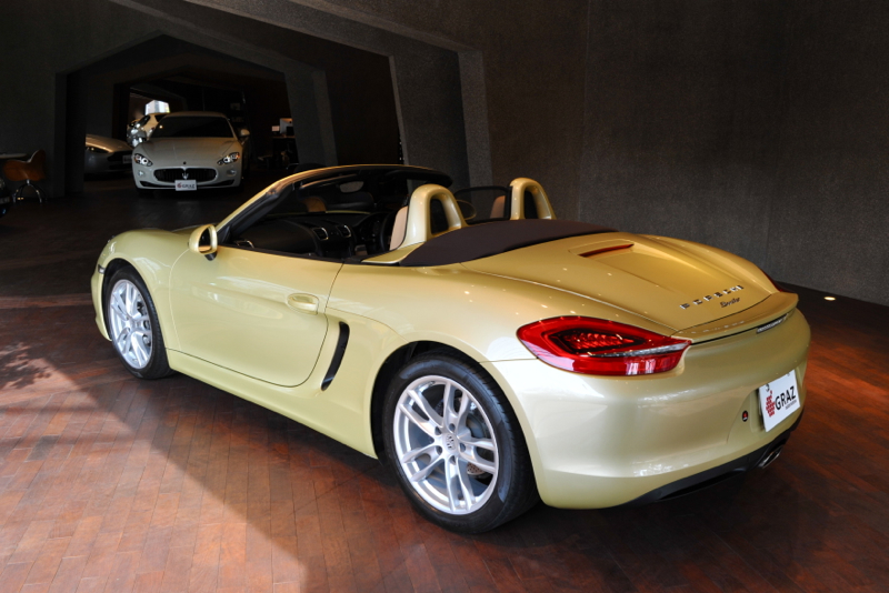 【契約御礼】2015年モデル ポルシェ ボクスター PDK ライムゴールド × ブラック/ルクソールベージュ・ツートンカラーレザーインテリア ブラウン幌 ワンオーナー スポーツデザインステアリング バイキセノンヘッドライト PDLS カラーシートベルト・ルクソール エレクトリックコントロールスポーツシート シートヒーター 電動可倒式ドアミラー ボディカラー同色塗装ロールオーバー・バー ウインドディフレクター パワーステアリング・プラス パークアシスト バックカメラ 純正ナビ 19インチ・ボクスターSホイール!