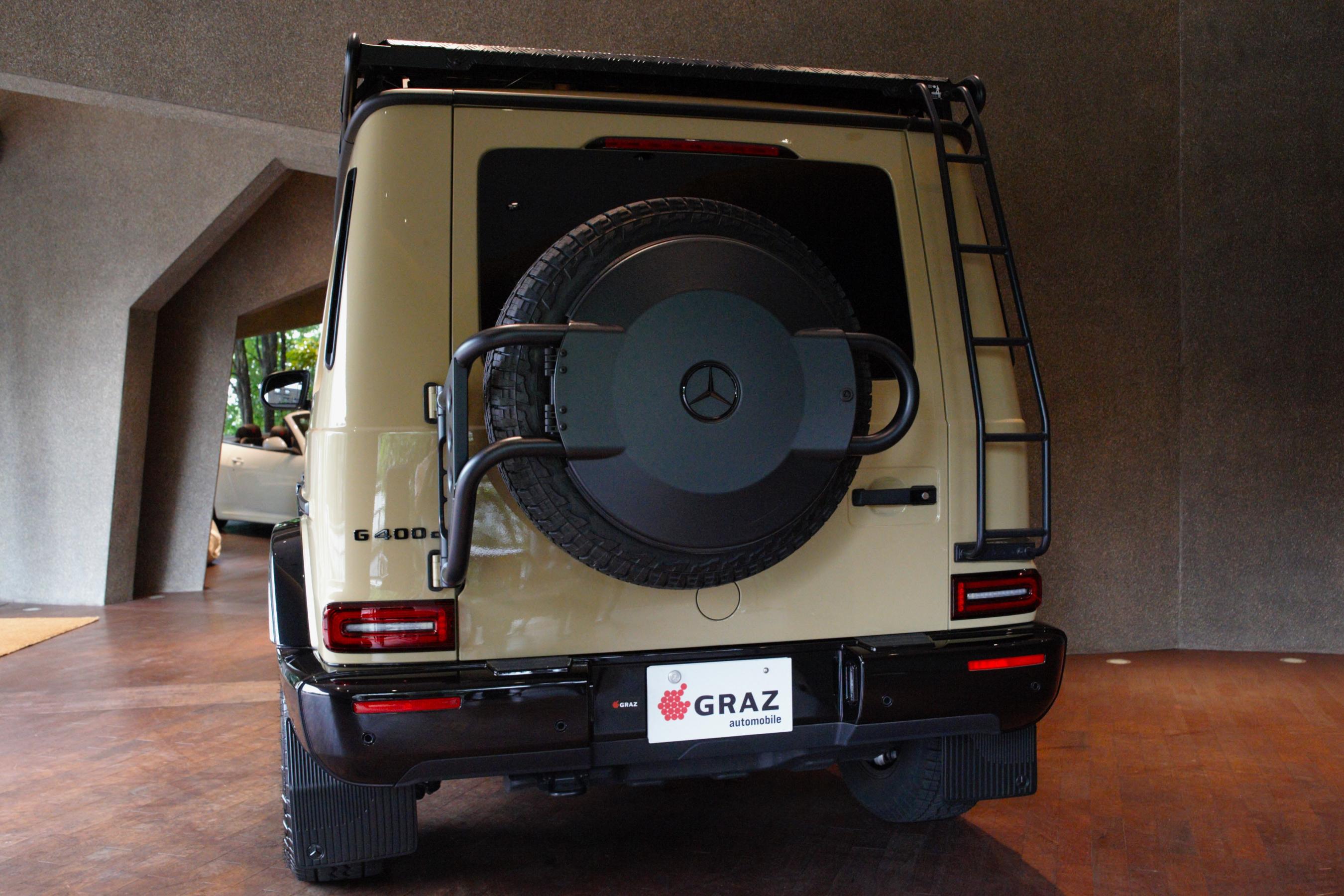 【本日2台目!】2024年 Mercedes-Benz G400d Professional Edition デザートサンド × ブラック(ブロンズステッチ) 右ハンドル ディーラー車 ワンオーナー ナイトパッケージ ナイトパッケージ2 スリーポインテッドスターエンブレムモデルエンブレムブラックスモーク仕様:マルチビームLEDヘッドライト・リアコンビネーションランプ・ウィンカーライト プロフェッショナルラインエクステリア(18インチ5スポークブラックペイントアルミホイール+オールテレインタイヤ・マッドフラップ・ランニングボードレス) プロフェッショナルルーフラック+ラダー プロフェッショナルスペアタイヤホルダー ラグジュアリーパッケージ エクスクルーシブナッパレザーシート(ダイヤモンドステッチ付) フルレザー仕様 リラクゼーション機能(フロント) シートベンチレーター(フロント)アクティブマルチコントロールシートバック(前席) シートヒータープラス(前席) 電動ランバーサポート(前席) ドライビングダイナミックシート(前席) ステアリングヒーター レザーDINAMICAルーフライナー ブラックピアノラッカーウッドインテリアトリム チェリーウッドラゲッジフロア アダプティブダンピングシステムメモリー付パワーシート(前席) シートヒーター(前席・後席) マルチファンクションステアリング クルーズコントロール&可変スピードリミッター カラーマルチファンクションディスプレイ 電動調整ドアミラー リバースポジション機能付ドアミラー(助手席側) 自動防眩ルームミラー&ドアミラー(運転席側) レインセンサー 乗降用ライト 12V電源ソケット(助手席、後席、ラゲッジルーム) イモビライザー クライメートコントロール(左右独立調整) ガラススライディングルーフ(挟み込み防止機能付) Burmesterサラウンドサウンドシステム Apple CarPlay/Android Auto TV ETC