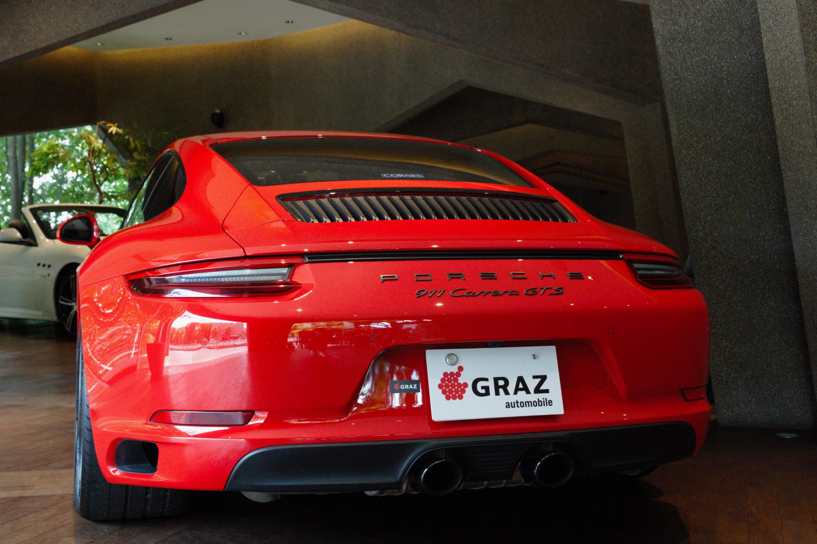 【契約御礼】2018年 PORSCHE 911(type991.2) Carrera GTS PDK ガーズレッド × ブラック 右ハンドル ディーラー車 20インチサテンブラックturbo Sセンターロックホイール レッドキャリパー スポーツクロノパッケージ スポーツエグゾースト PASM PDLS バイキセノンヘッドライト ヘッドライトウォッシャー 2ゾーンオートクライメートコントロール シートヒーター GTスポーツステアリングホイール ガーズレッドクロノメーター ガーズレッドメーターパネル ブラックアルミインテリアトリム アルカンターラルーフライナー Apple CarPlay ドラレコ レーダー ETC