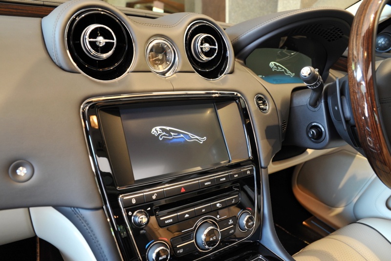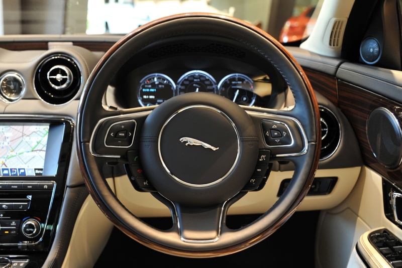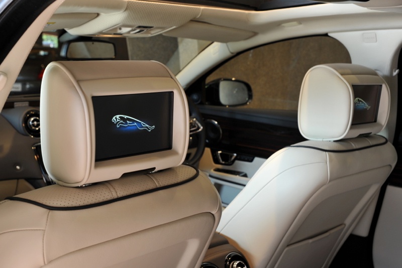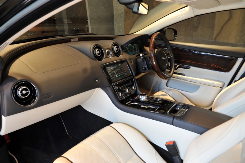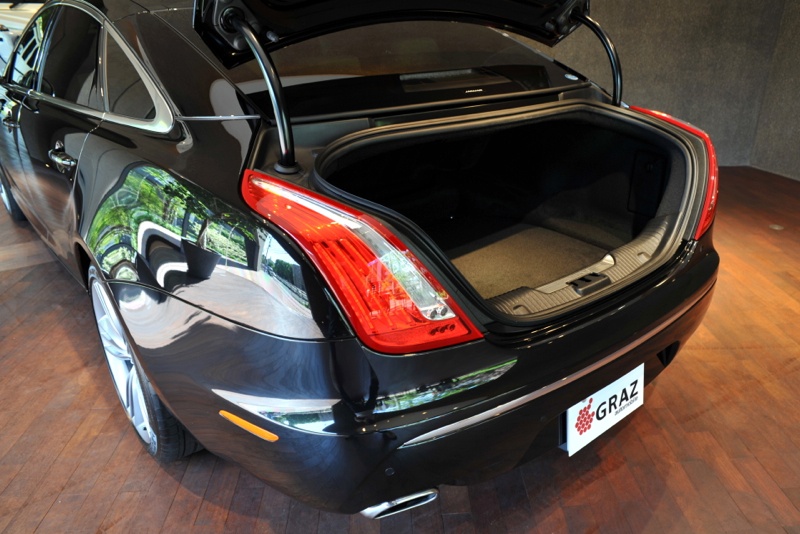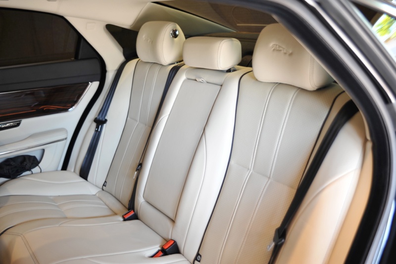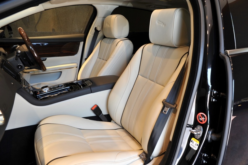 ■すべてのシートに、ヒーターはもちろんクーラー、マッサージ機能付きです。英国とイタリアから選び抜いた、極上の柔らかさと天然の質感を持つセミアニリンレザーに、質の高いツインニードルステッチをほどこしたシートで快適そのもの、ドライバー他お乗りになる方皆様全員を『ファーストクラス』の旅へご招待いたします。(笑) また、シーリングまでの内装が、この極上のレザー張りになっているという凝りようです。ドア内側には、天然木を精巧に加工し象嵌されたパネルを使用しており、これぞジャガーのステータスにふさわしいインテリアに仕上がっております。リアエンターテイメントには、 メディアインターフェース付10.2インチデュアルLCDスクリーン、そして英国屈指のオーディオブランド、Meridianが、XJのために共同開発したオーディオシステムの搭載等、毎日ファーストクラスで移動できるラグジュアリーなカーライフがお客様をお待ちしております。