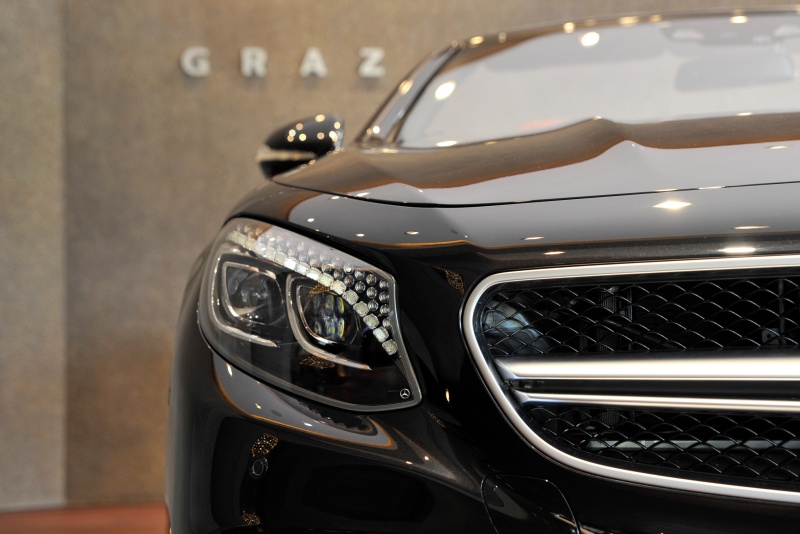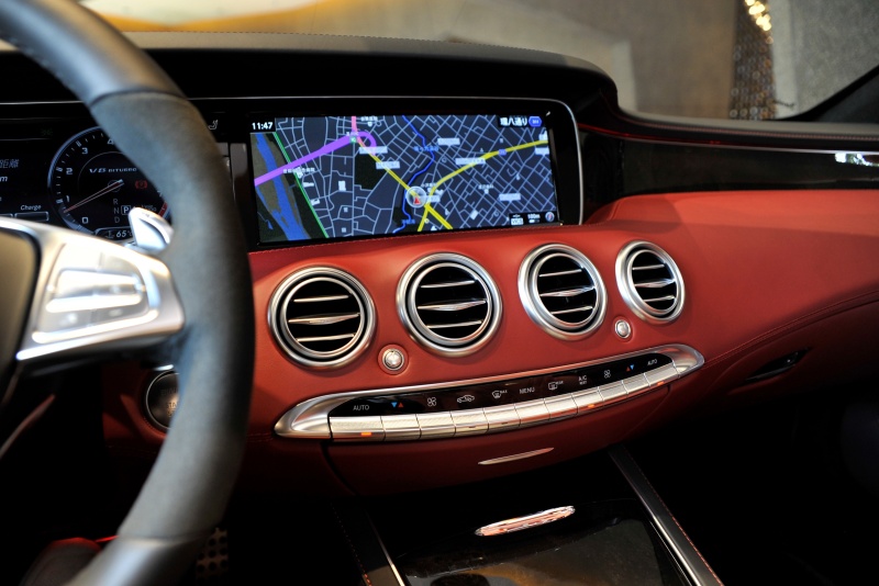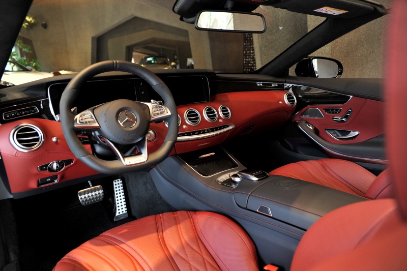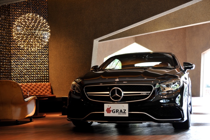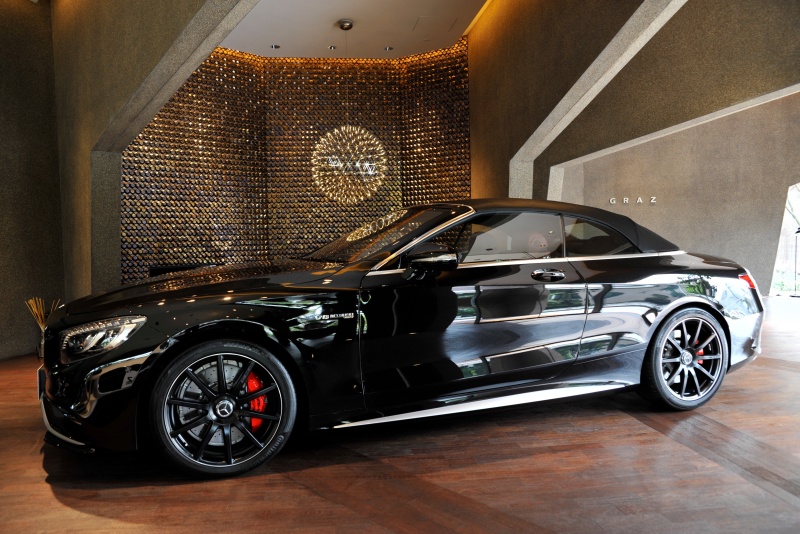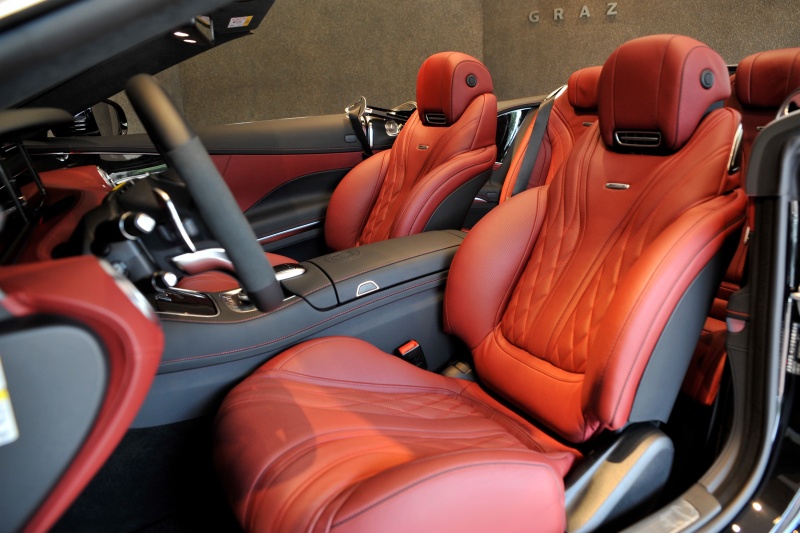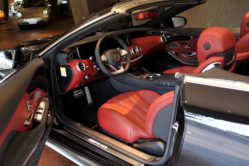 ■44年ぶりにメルセデスにラインナップされた4座オープンのSクラスカブリオレ、オブシディアンブラックとバーガンディの組み合わせが上質な色気を醸し出します。